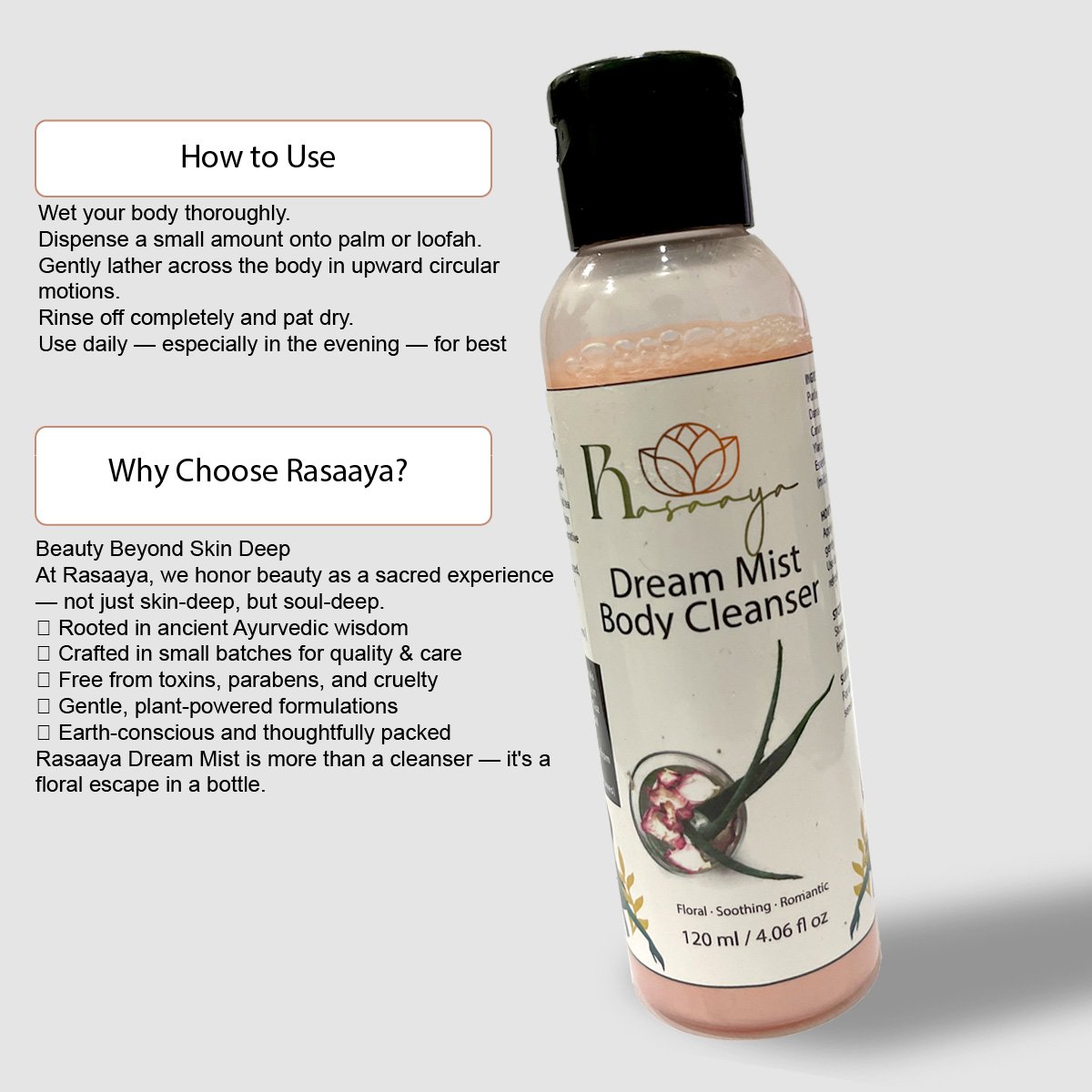 Rasaaya Dream Mist Body Cleanser—Herbal Ayurvedic Body Wash for Calm & Glow