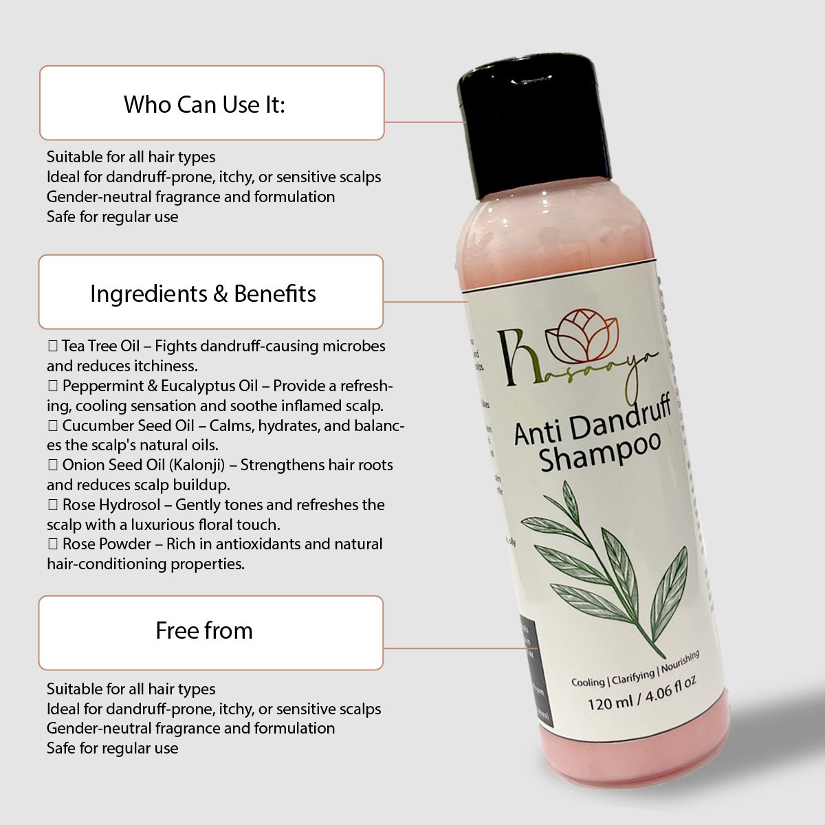 A naturally refreshing anti-dandruff shampoo enriched with tea tree, peppermint, eucalyptus, cucumber seed oil, and rose hydrosol—handcrafted to cleanse, soothe, and restore balance to irritated scalps. Red in color and rich in Ayurvedic goodness, this shampoo leaves your hair soft, fresh, and flake-free.